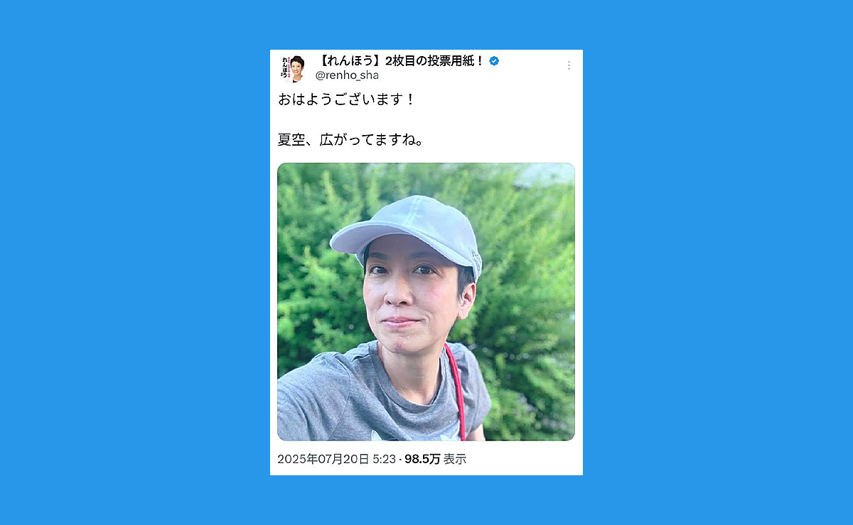 問題となっているのは、投開票日当日にSNS(旧Twitter)のアカウント名を「【れんほう】2枚目の投票用紙!」に変更していたことで、これは実質的に投票を呼びかける選挙運動にあたるのではないかと指摘されています。