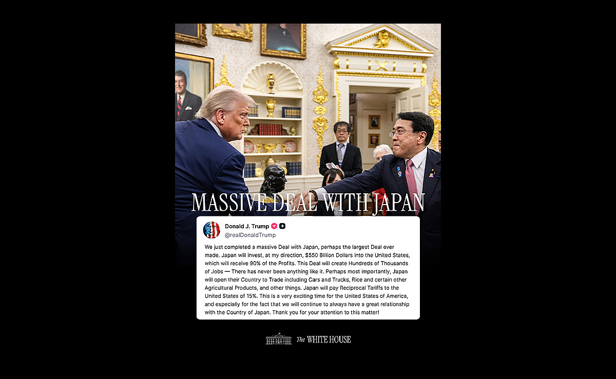 我々は今、日本との巨大な取引を完了した。おそらく史上最大の取引だ。日本は私の指示で5500億ドルをアメリカに投資し、その利益の90%をアメリカが受け取る。この取引によって数十万人規模の雇用が創出されることになる。これまでに類を見ないことだ。