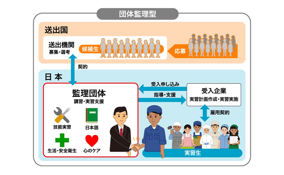 技能実習制度(団体管理型)のしくみ 国際人材育成機構HPより