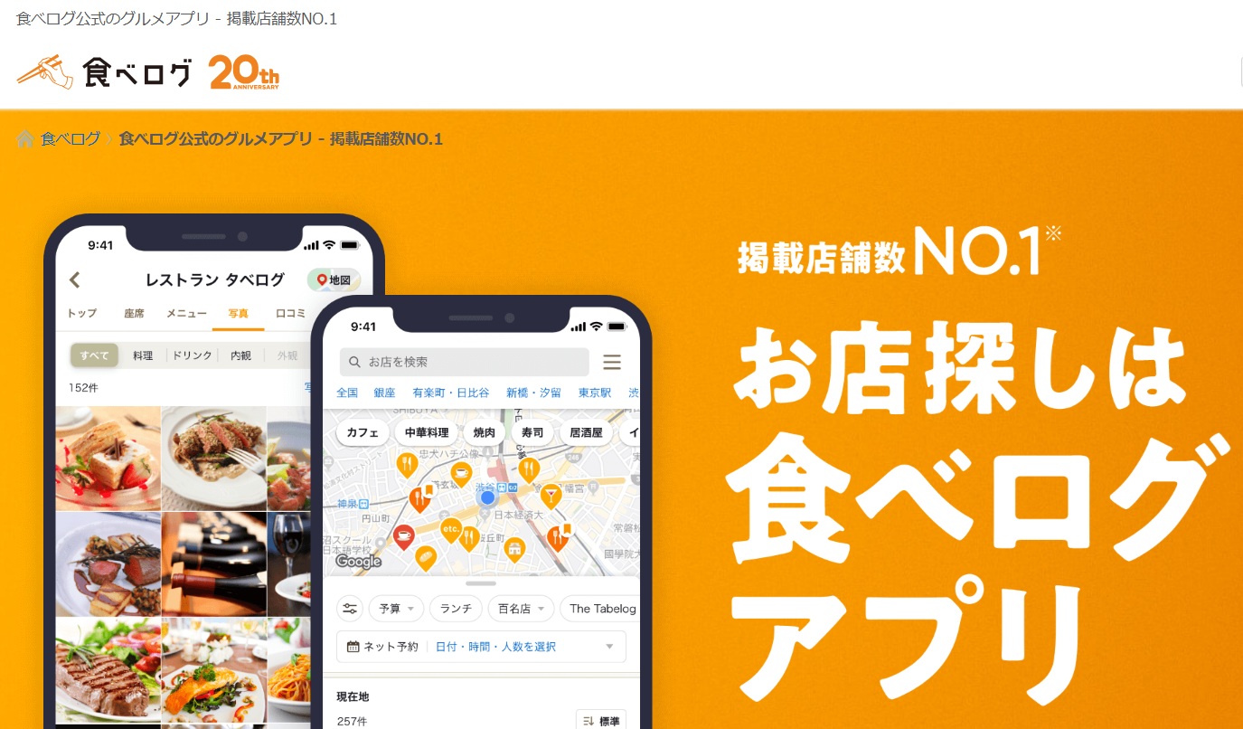 食べログという有名なグルメサイトがあります。無料の携帯版で検索すると「標準」という表示順になって広告費を払っているお店が上位に掲載されたり、5点満点の評価が信用できないことが多いなど使い方に注意が必要な飲食情報サイトです。