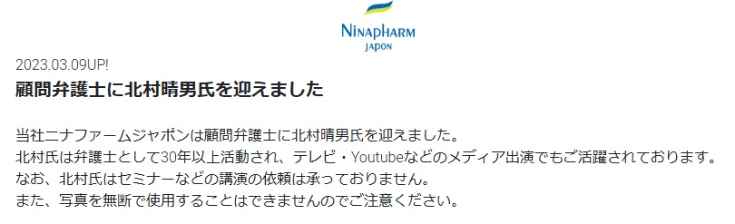 同じくマルチ、ネットワークビジネスが指摘されているニナファームの顧問弁護士でもあります。