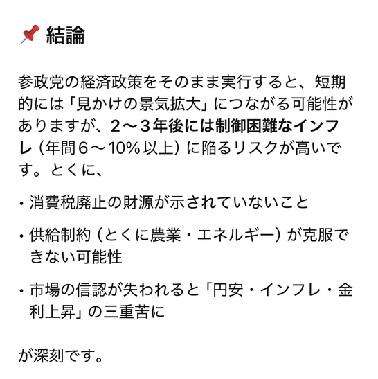 この基本政策をもとにChatGPTにプロンプトを与え、どうしたら実現するのか、そして実現した場合の日本の経済はどうなるかを長時間掛けて試算して貰いました。