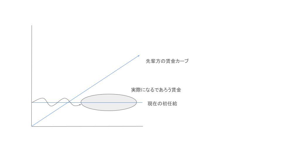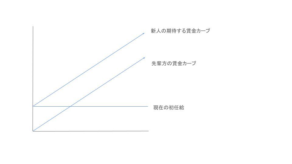 彼らの期待する入社後の賃金カーブを図にするとこんな感じです。