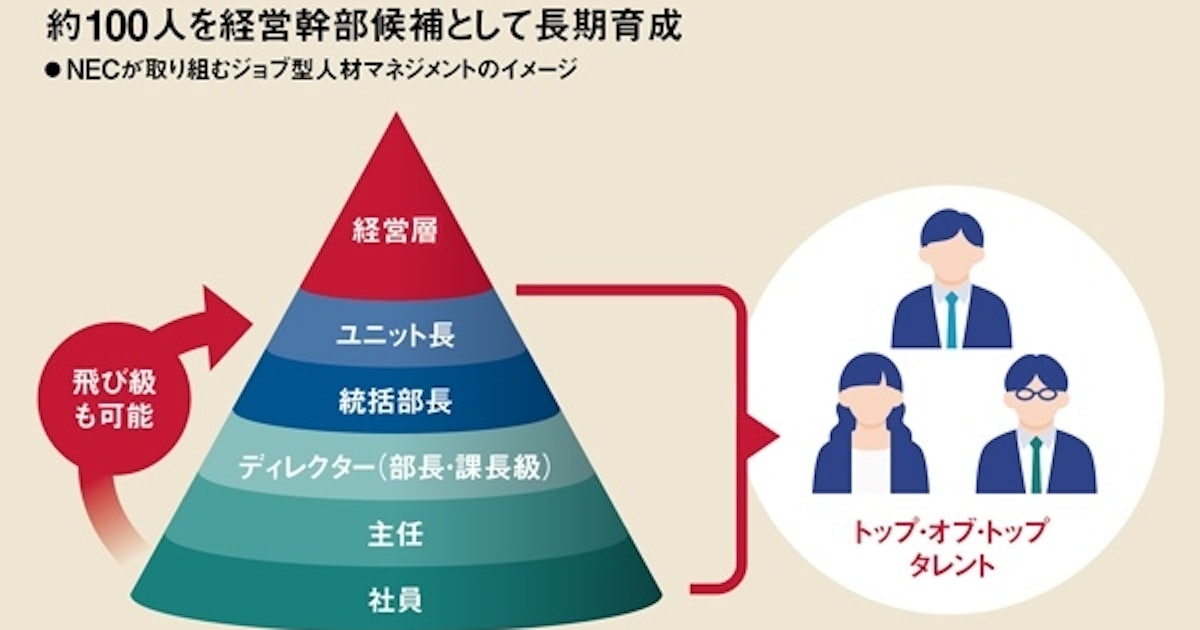 【参考リンク】NEC、ジョブ型で27歳部長級誕生 「先輩の部下」を育成