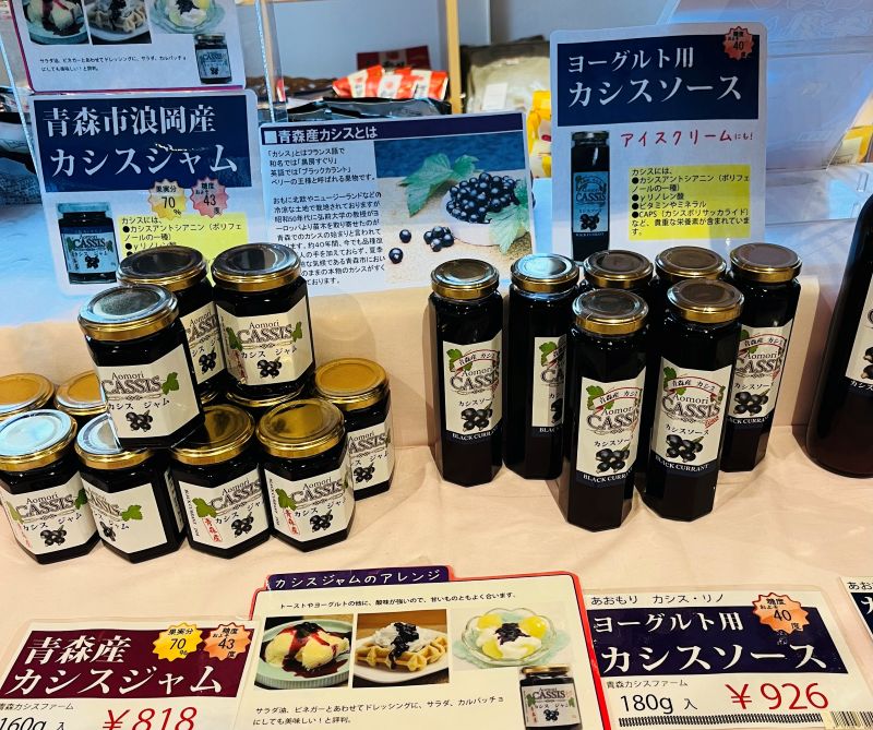売店のカシスジャムとカシスソースのコーナー。このほか冷凍カシスも。