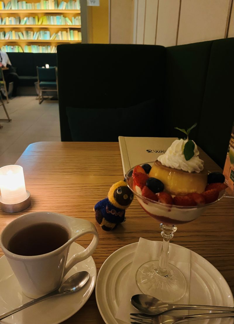この夜の締めくくりは、生クリーム控えめにしてもらったイチゴとプリンのパフェと香ばしいほうじ茶。フルコースの後とは思えないほど、すっと身体に溶けていきました。