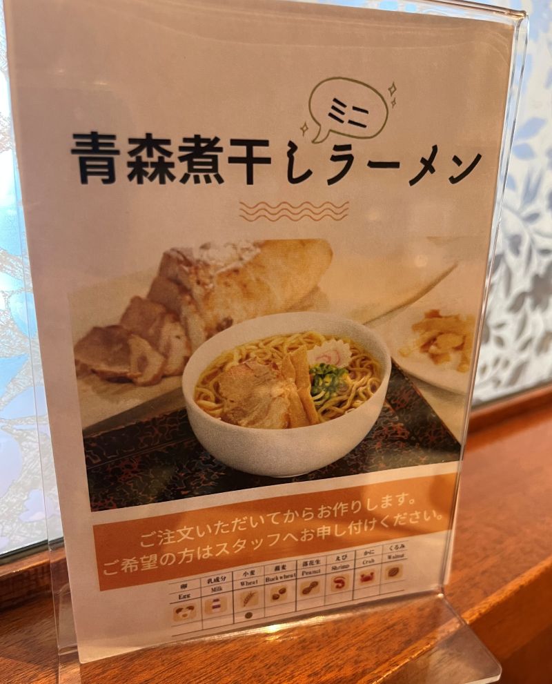 JALシティ青森の朝ごはんのビュッフェの他に、注文を受けてから作ってくれる煮干しミニラーメン。