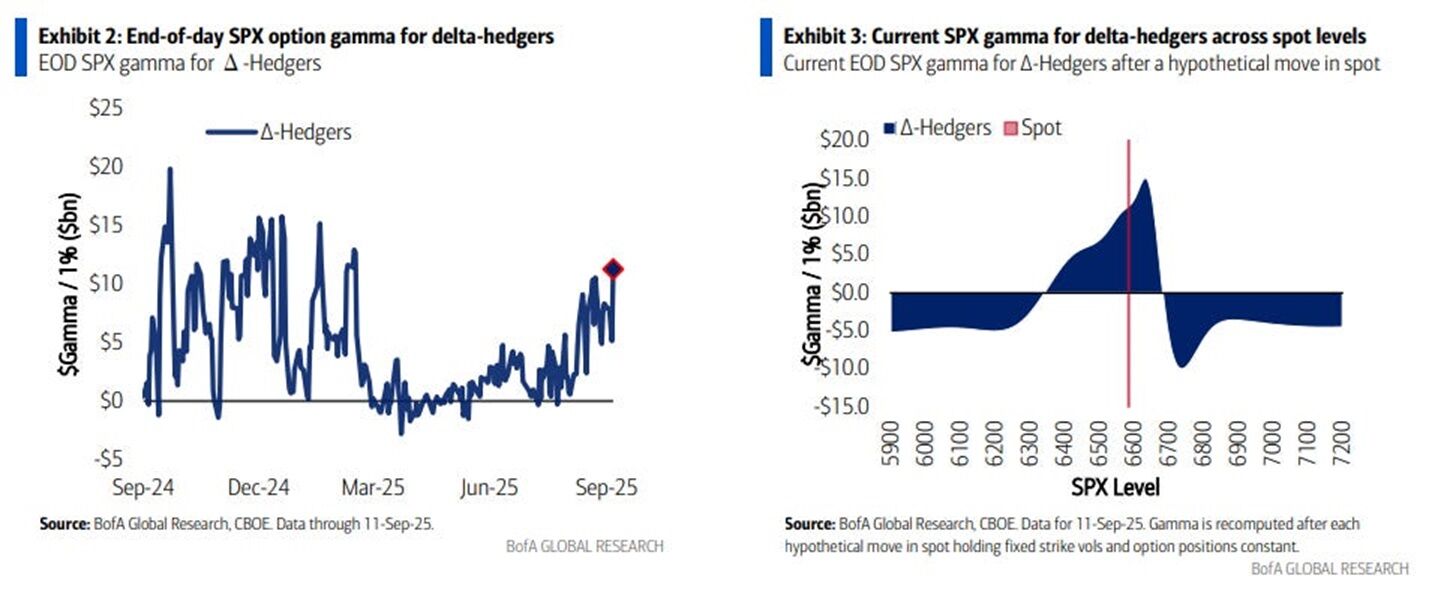 BofAのディーラーガンマは相場の上昇を追い掛ける形でポジティブガンマの山が上方に移動している。Op Ex通過である程度のポジションは消えると思われるが、すぐネガティブガンマに転じる恐れは基本的にない。