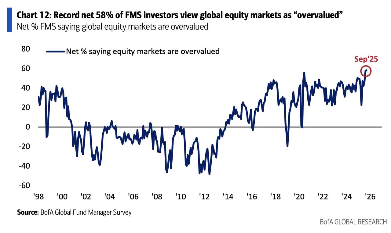 利下げ再開でバブルになった場合の上値余地を語り出す市場参加者も出てきた。BofAのFMサーベイでは過去最多%の回答者がグローバル株式市場を「割高」と答えているが、口嫌体正直の範疇を出ない。ソフトバンクGが再びAI関連に資金を突っ込んでいるが、バブル後半に突っ込んではバブル崩壊に直撃される前科も目立つためそういう見方をされている。