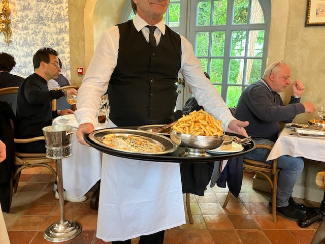 横のテーブルとおしゃべりが始まり、聞けば、男性は、昔モナコの「ルイ・カンズ」で料理人してた、と。フランク・チェルティやムッシュ・デュカスの話で盛り上がる。”あの人も、ルイカンズにいたんだよ”と彼が指差すテーブルを見ると、おぉぉ、愛しのレストランで、ずーっとシェフソムリエやってて数年前に引退したノエル!わぁ、すぐそばのテーブルだったのに、全然気づかなかった。私服だとわからない(笑)