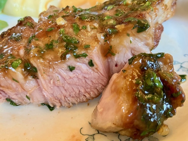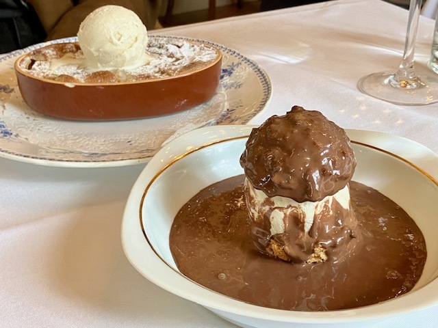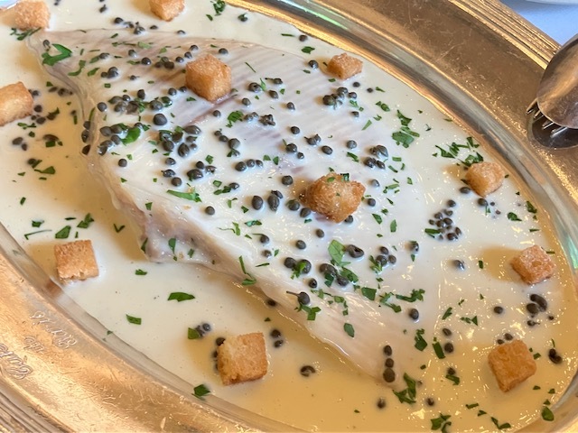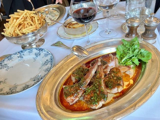 なところにやってきた仔羊の背肉は、1、2、3、ひゃぁ5切れも。前もって言っておきます、完食、無理です…。好みよりはちょっぴり火が入りすぎてるけど、こちらも前菜同様、シンプルなおいしさにほっこり。3切れ半食べて、ごめんなさい…。友は、これまた二人分もありそうなエイフィレのブール・ブラン。超食通友は、付け合わせのとろんとろんピュレも含めて完食。尊敬。
