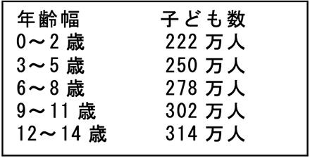 世界的にみると、子ども割合が低い国々は第二次世界大戦で「枢軸国」(the Axis Powers)を形成した日独伊の三国である。日本は11.1%、イタリアは11.9%、ドイツでも13.9%であるが、一方の連合国(the United Nations)ではアメリカ17.3%、イギリス17.2%、フランス16.5%などになり、敗戦国と戦勝国における戦後の人口政策の相違が感じられる。