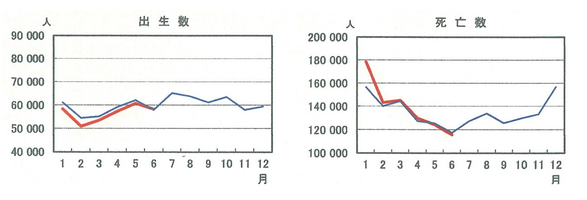 左:2025年の出生数(1月~6月) 右:2025年の死亡数(1月~6月)