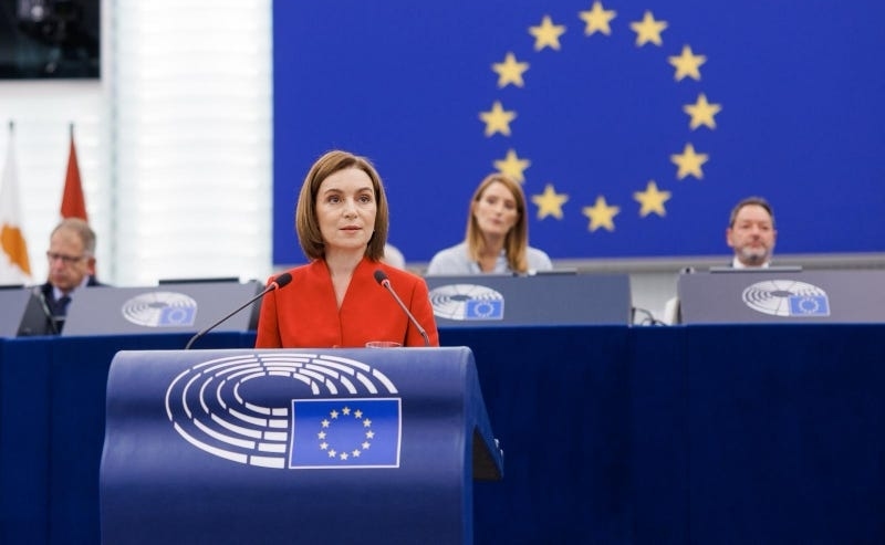 欧州議会でスピーチするサンドゥ大統領 2025年9月9日 モルドバ大統領府公式サイトから