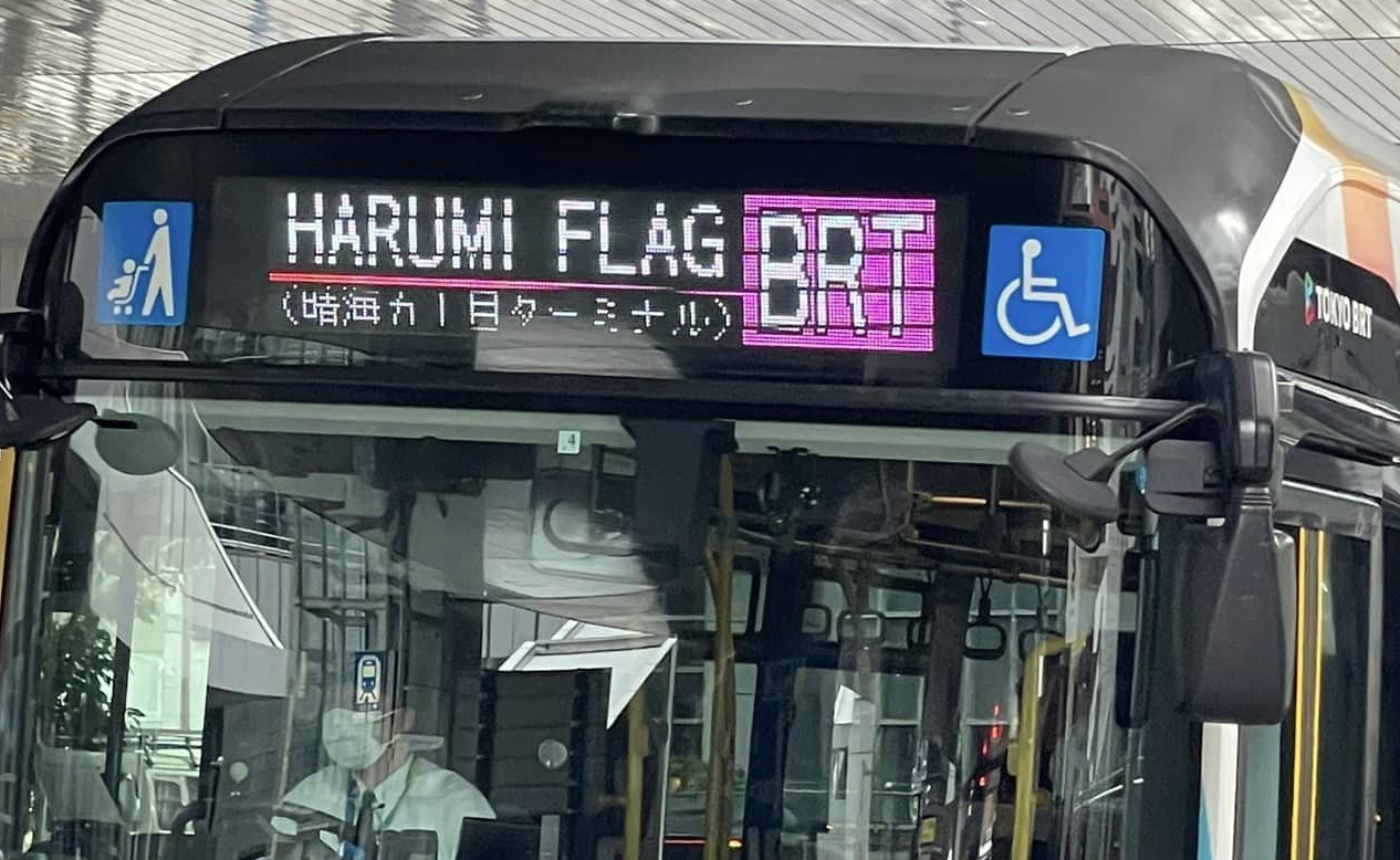 晴海フラッグから新橋駅にはBRTと呼ばれる路線が走っています。BRT(Bus Rapid Transit)とは呼んでいますが、実際は普通のバスとあまり変わるところがありません。