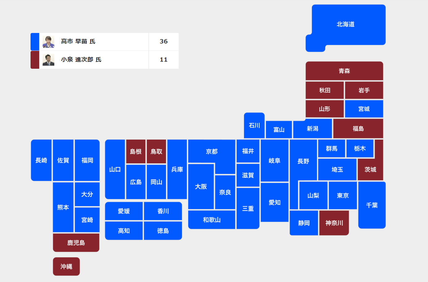 やはり高市早苗候補が党員票を思いっきり集めた事が大きかったように思います。