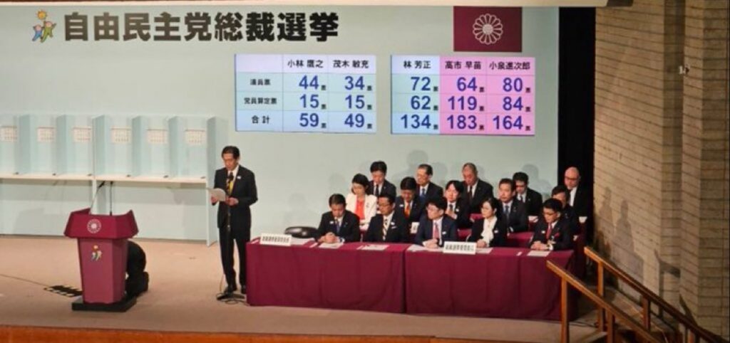4日に行われた自民党総裁選の投票は一回目では決着がつかず、決選投票となりました。