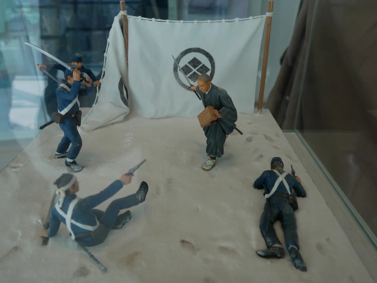 リアルなミニチュアが五稜郭タワーの中で戦争の歴史を伝える。