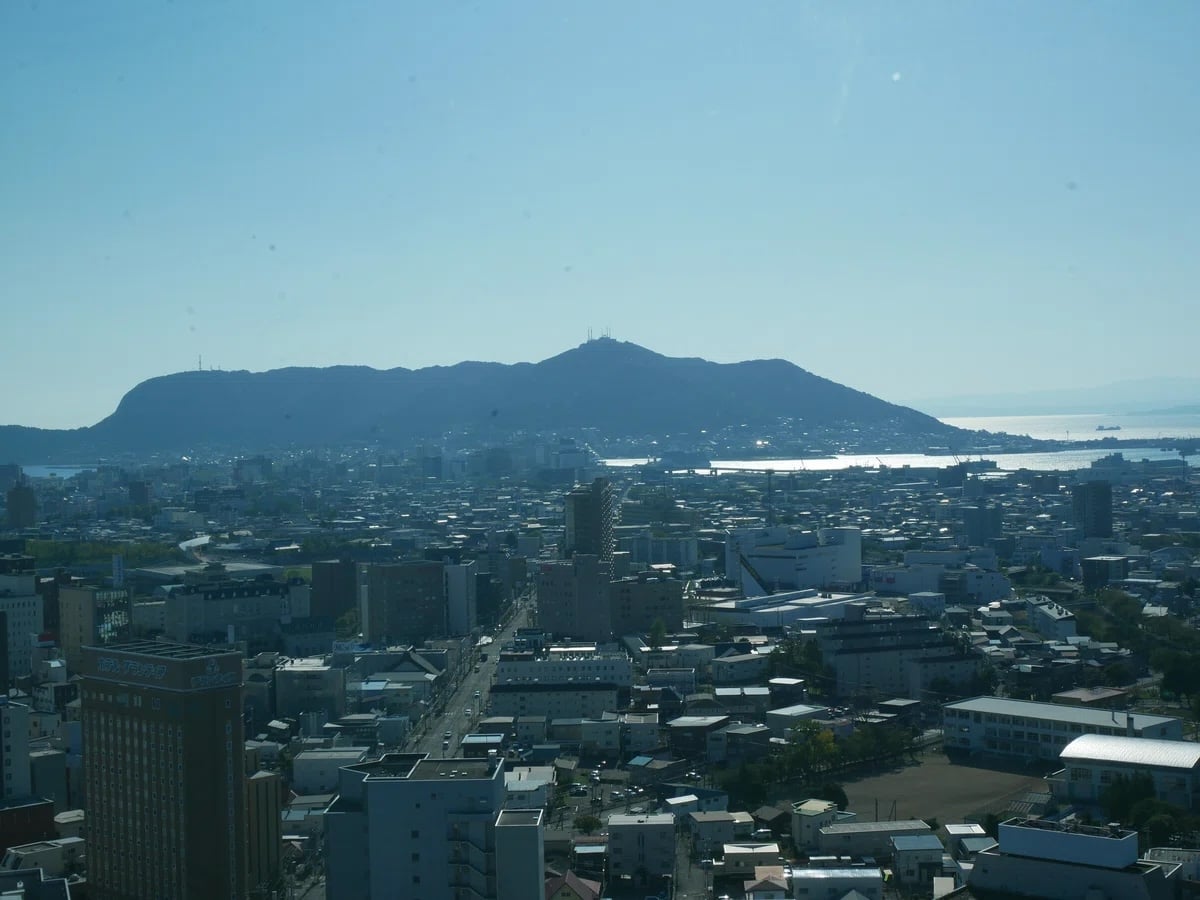 最後に少し、タワーから眺めた五稜郭以外の景色も。こちらも函館を代表する観光名所、函館山。かつて軍事拠点として立ち入り禁止だった山は今や日本を代表する夜景観賞スポットとなりました。