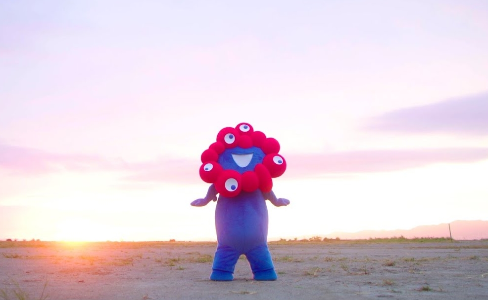 2022年、建設前の万博会場に立つミャクミャク 大阪・関西万博HPより