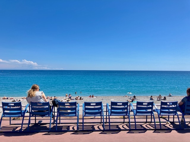 ニースといえば、このアジュール色のベンチ