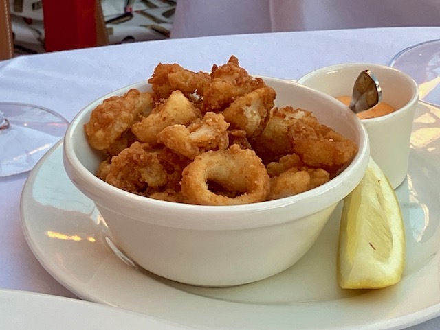 セネキエ色(=鮮やかな赤)のカクテルで乾杯し、ゆっくりくれてゆく空と港を眺めながら、プロヴァンスの美味が主役の、軽くて風味豊かでおいしい料理の数々。