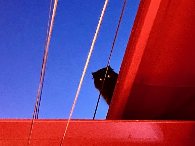 セネキエのオーナーの飼い猫が、テラスのテントの上をのそのそ歩いては、時々顔をひょこっと覗かせる。かわい〜、降りてくればいいのになぁ