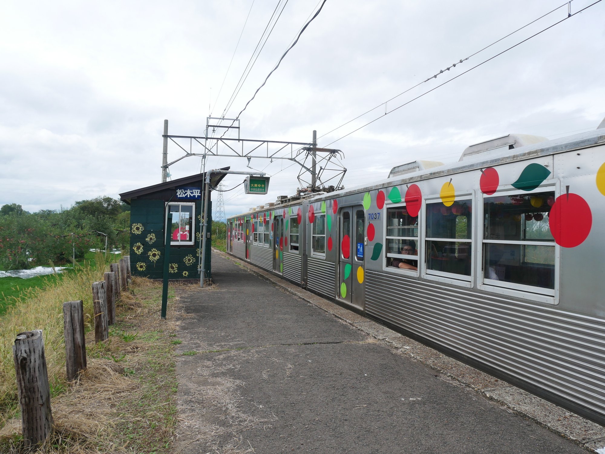 せっかく「りんご畑鉄道」に乗ったので、りんご畑をよりいっそう感じてみたい。そう思い、途中の松木平(まつきたい)駅で下車しました。