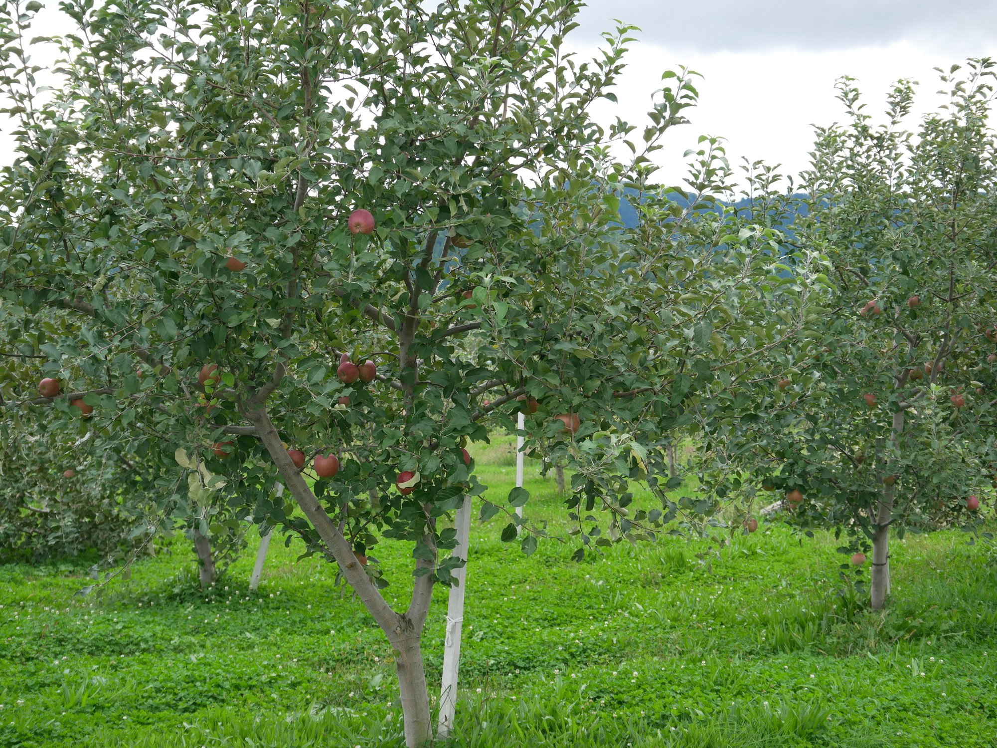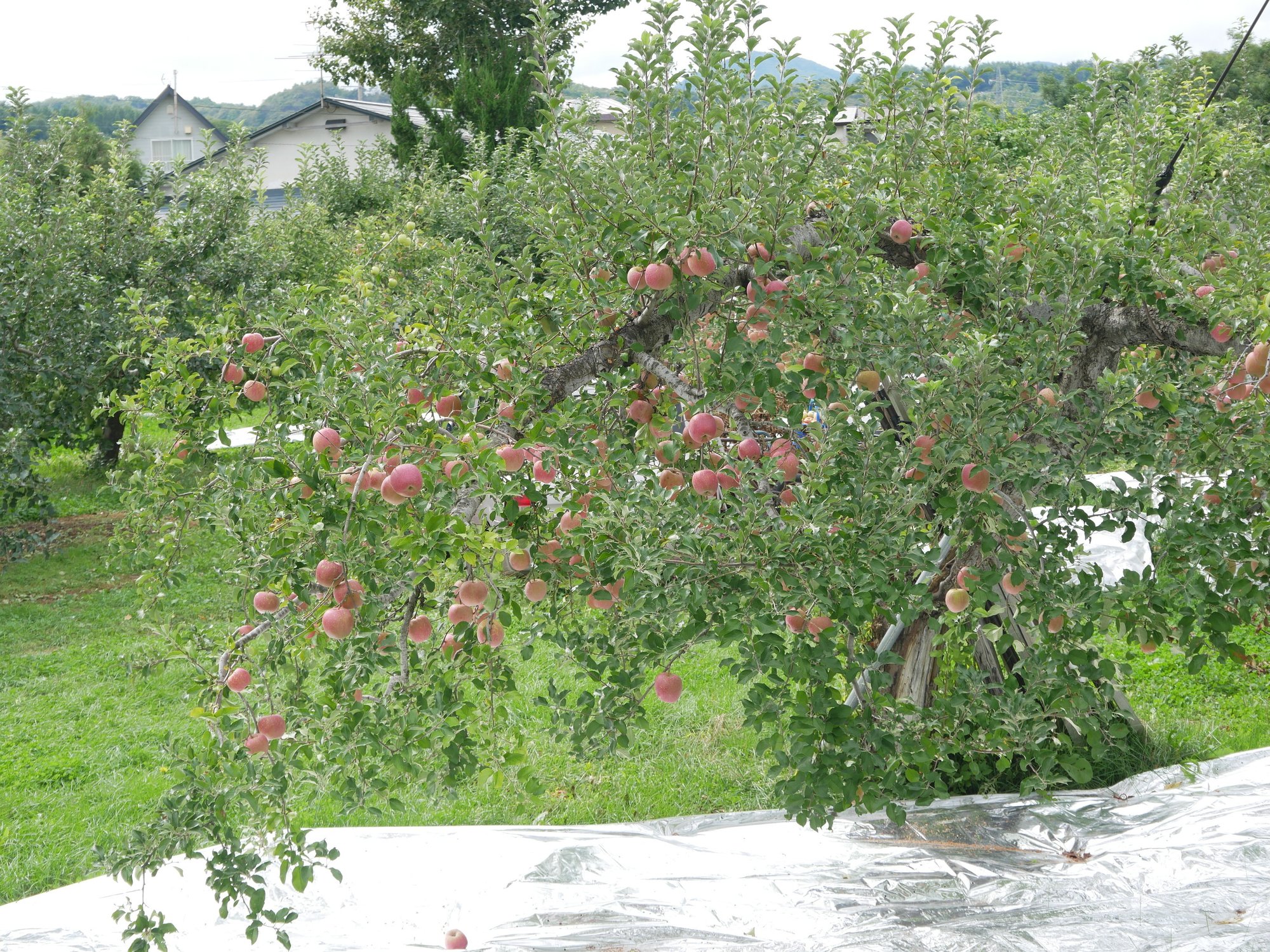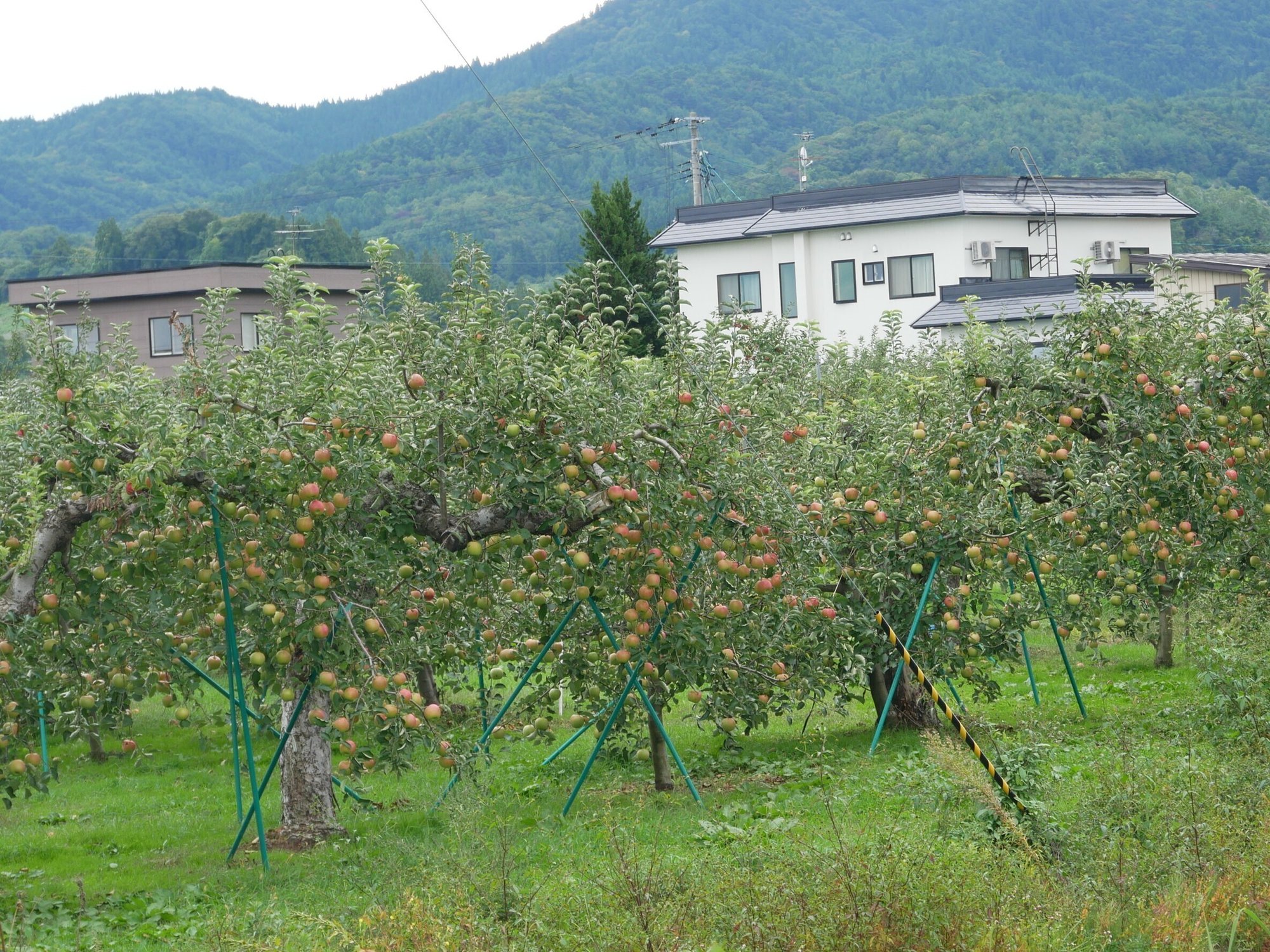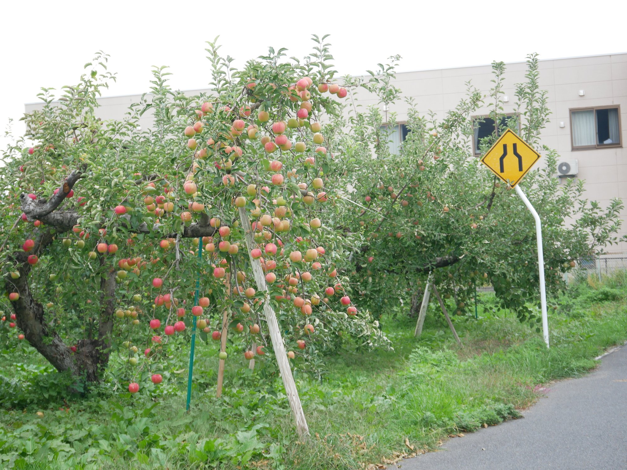 この駅、降りるとすぐ裏手にりんご畑があって、10月にはこのように真っ赤なリンゴが実っているところに出会うことができるのです。