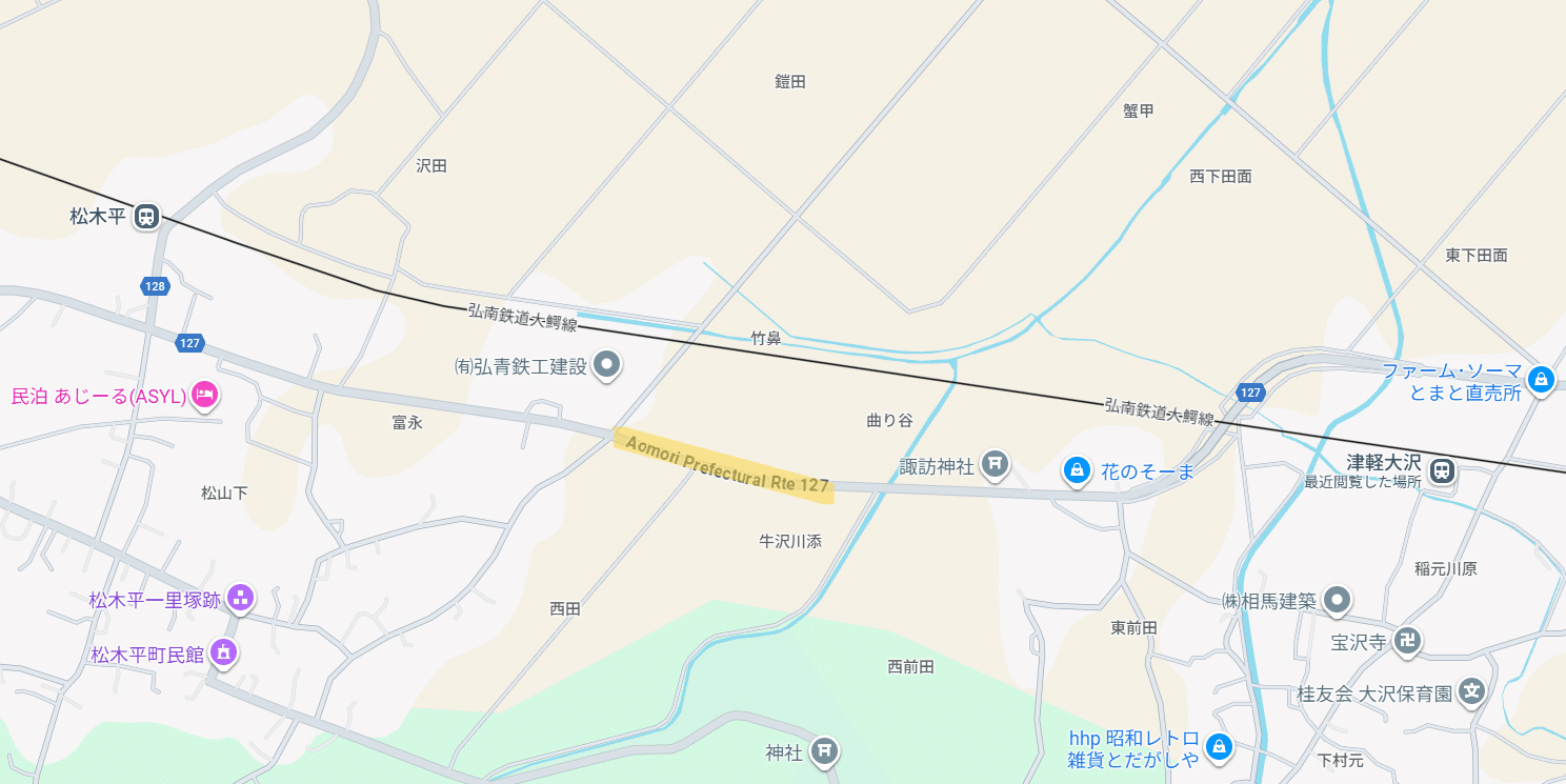 両駅の間に伸びる青森県道126号線は通称「アップルロード」と呼ばれ、沿道にはりんご畑が広がっています。この時期は赤く色づいたりんごを眺めながら散歩することができて青森の秋を存分に感じることができます。