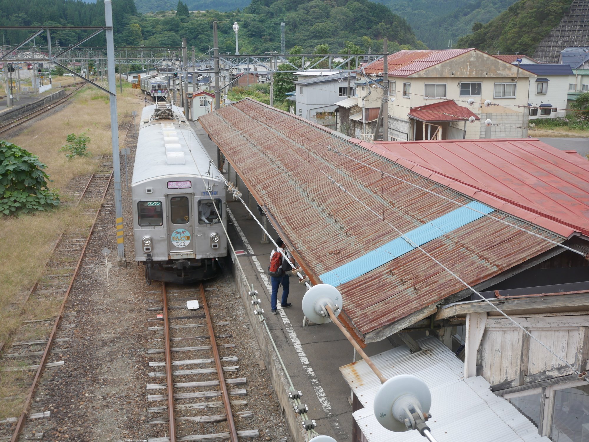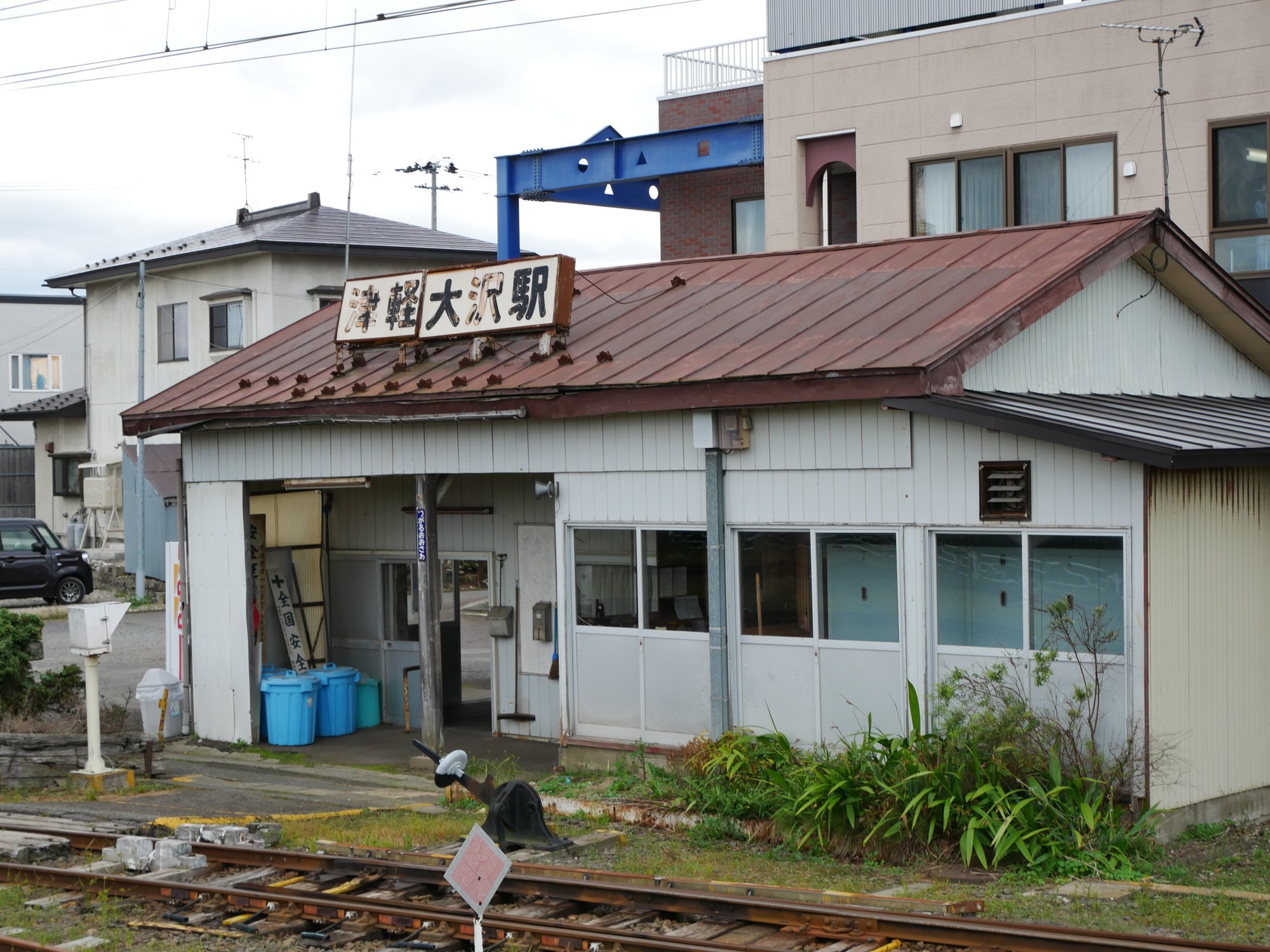 津軽大沢駅に到着しました。ここは大鰐線の中間駅で、上下線の列車の交換が行われます。大鰐線の車庫もここにあって非番の列車がここで休んでいます。