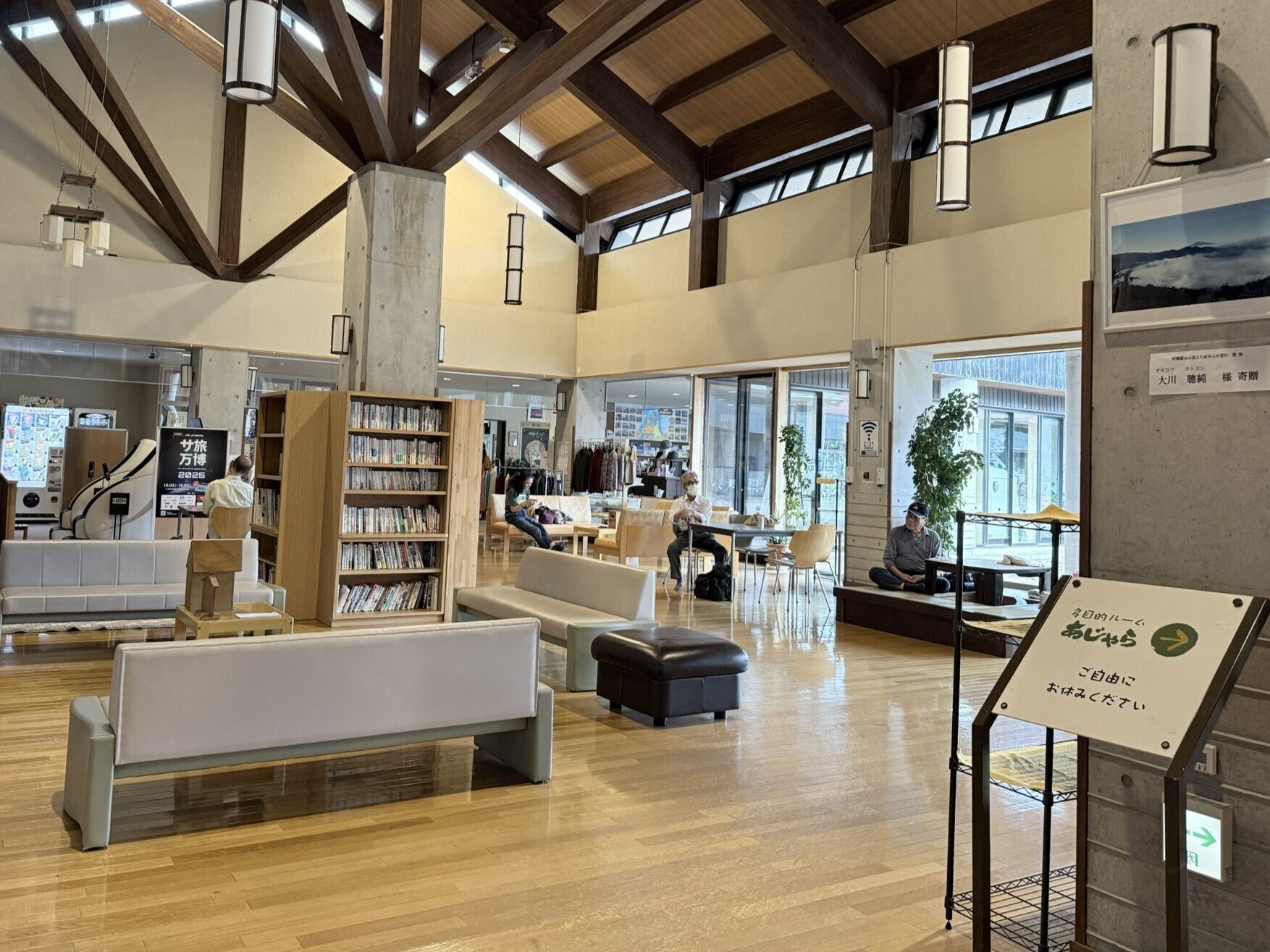 温泉施設の中はこざっぱりとしていて、ここでも食事ができるほか待合室では本を読んで寛ぐこともできます。癖のないお湯で長湯もできそう。地元の人も温泉を楽しんでいるようでした。