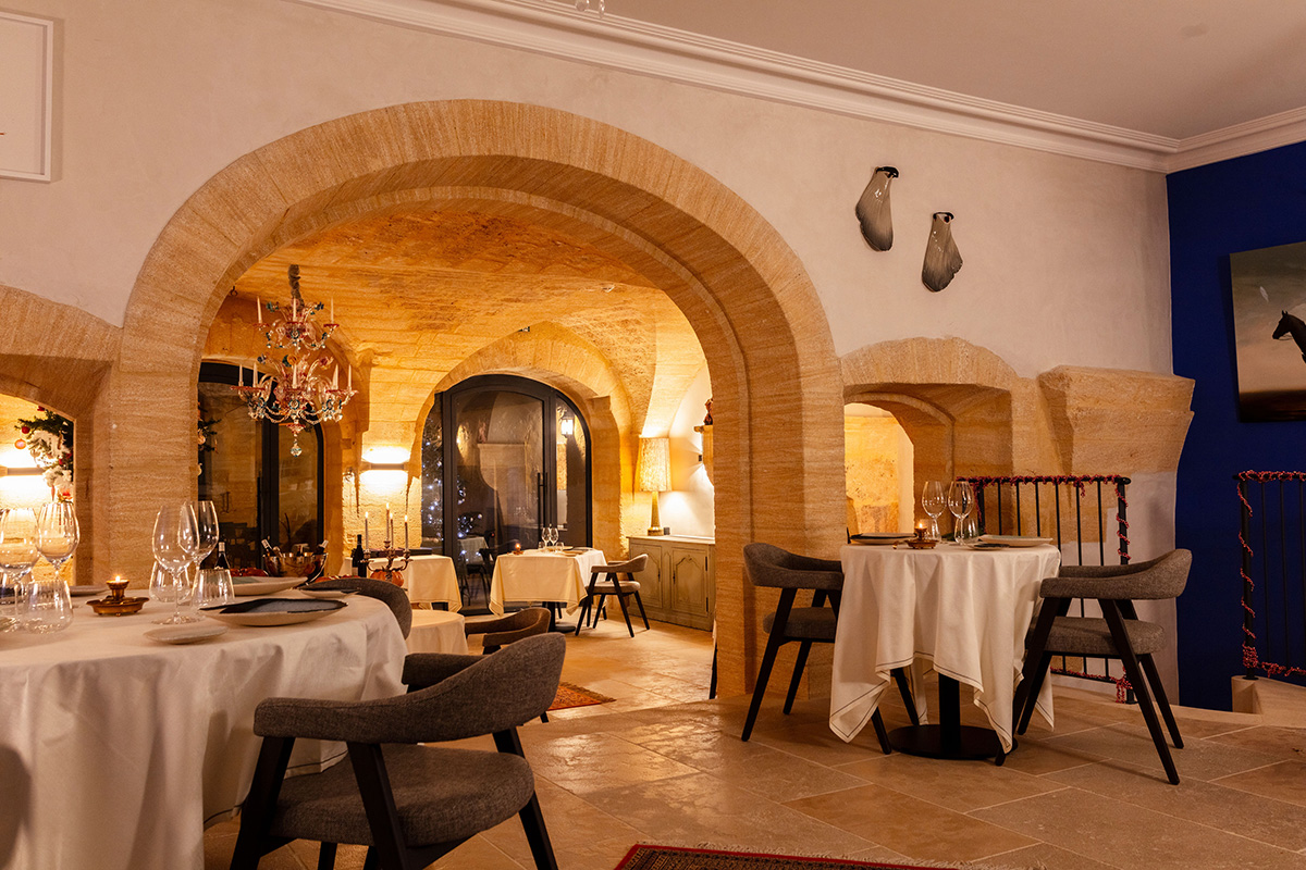 広々とした城内には、客室のほかに、石壁が美しいガストロノミーレストラン、テラスに面したビストロ、落ち着いた雰囲気のサロンなどがある。