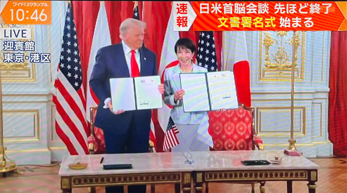 日米関税交渉が合意され文書に署名がされた。これは大きなインパクトをもつ。ポイントは、自動車などの関税が15%。日本から米国への投資が約80兆円。これらに加えてレアアースのサプライチェーンを日米を基軸に新たに構築することも含まれている。