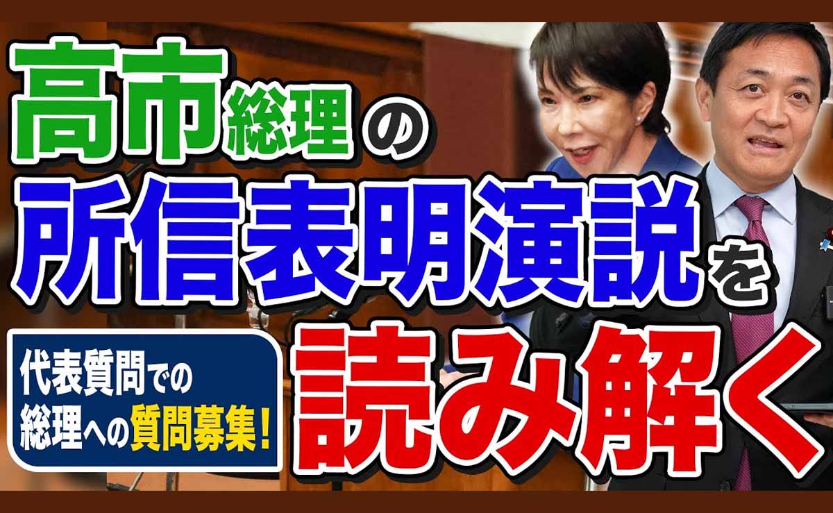 高市首相の所信表明演説について、玉木雄一郎氏が「強い経済を作る」「責任ある積極財政」などの評価できる点と、領土・米政策・子ども政策・政治資金・議員定数削減など触れられなかった懸念点を解説します。