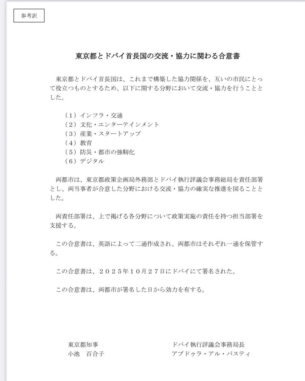 去る10月27日にまたしても小池知事「中東外遊中」に青天の霹靂で交わされた「東京都とドバイ首長国の交流・協力に関わる合意書」につき、