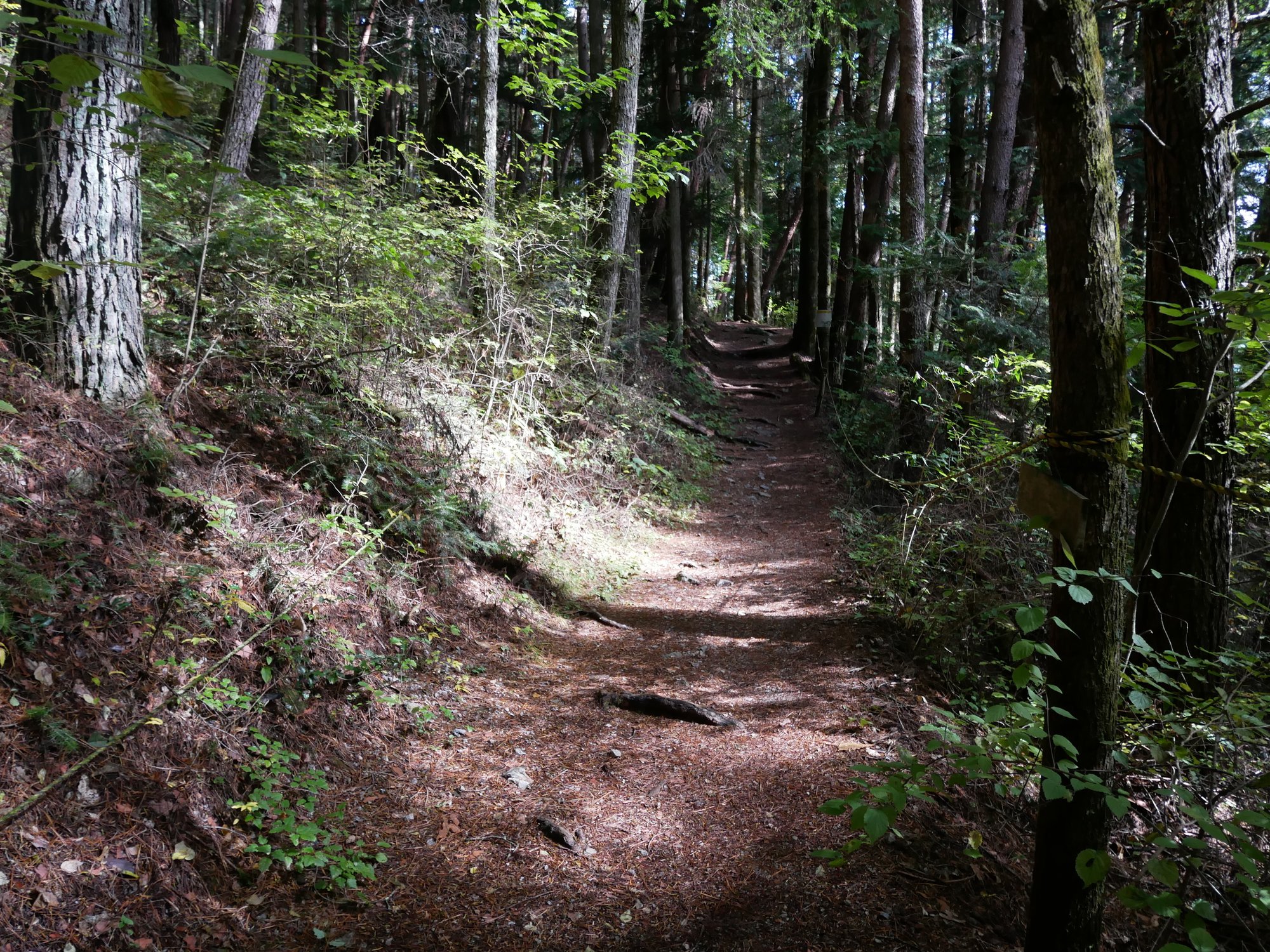 ここから絶景が見えるポイントまではこんな山道をいきます。800mほどなんですが結構遠く感じます。今年は熊が多く出没しており、飯田市でも別の地域で熊が確認されています。