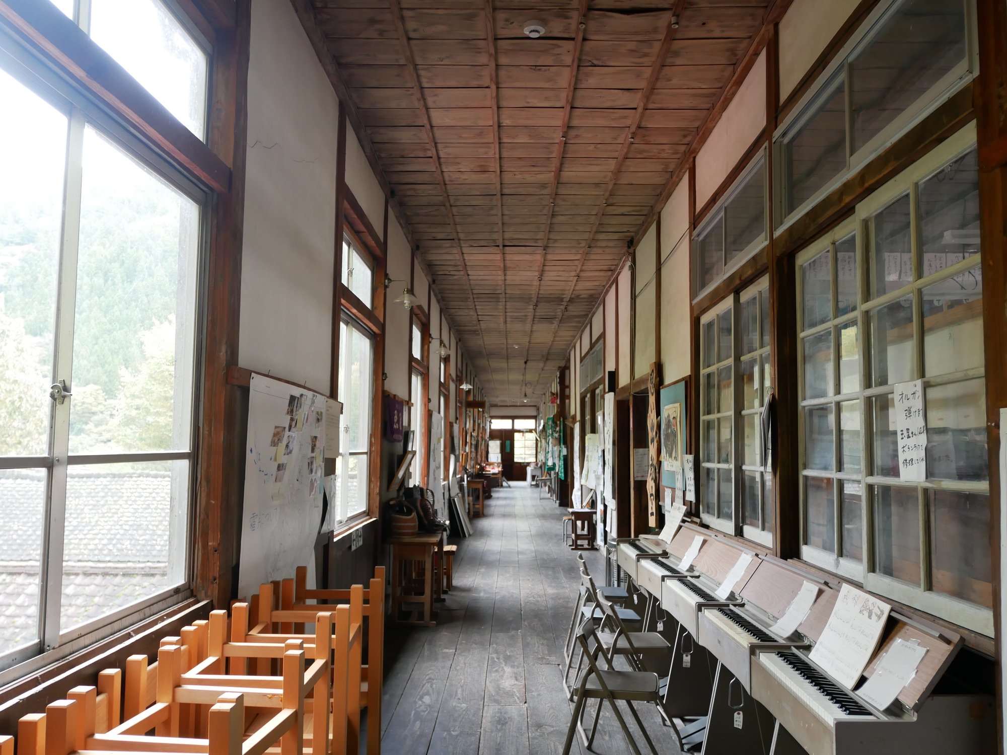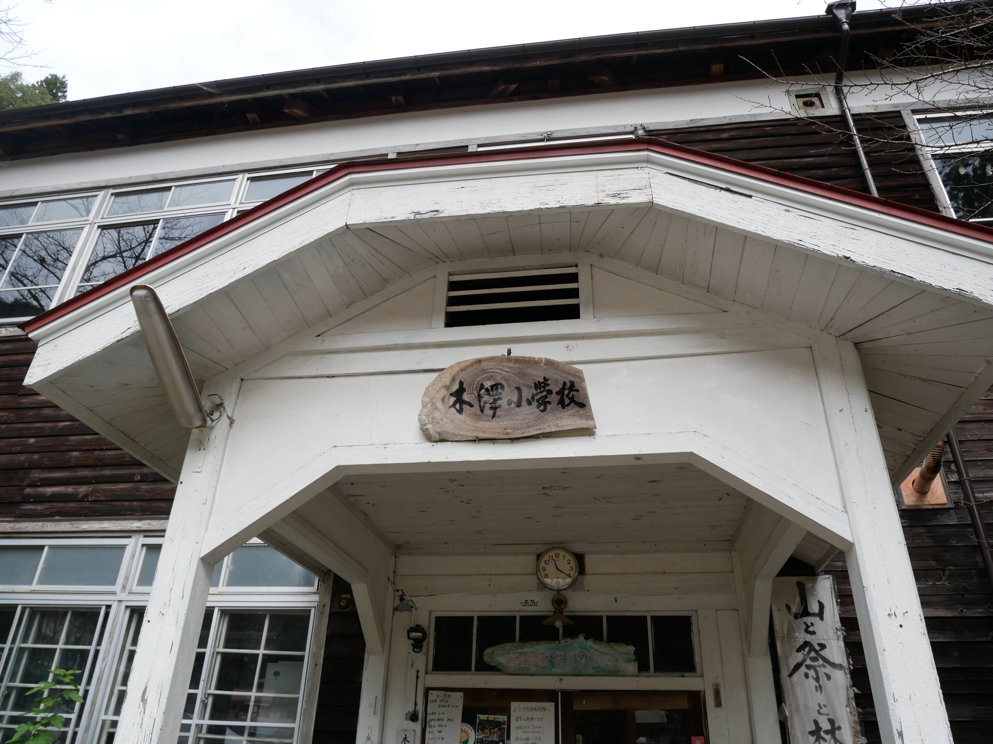 山を下り、旧南信濃村の木沢地区にやってきました。ここには平成12年まで学校として使われていた旧木沢小学校があります。木造のノスタルジックな雰囲気の建物。今は地元住民の手で保存され、資料館や地元のイベントスペースとして使われています。