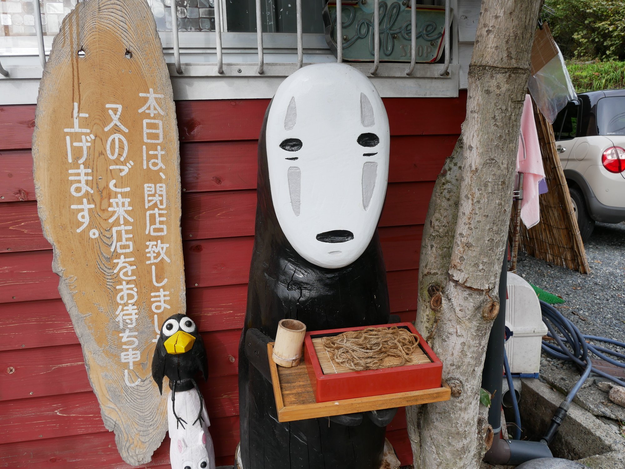 この日はお休みだったようです。店番はカオナシ。遠山郷の「霜月祭り」が「千と千尋の神隠し」のモチーフになったといわれていることが関係しているようです。