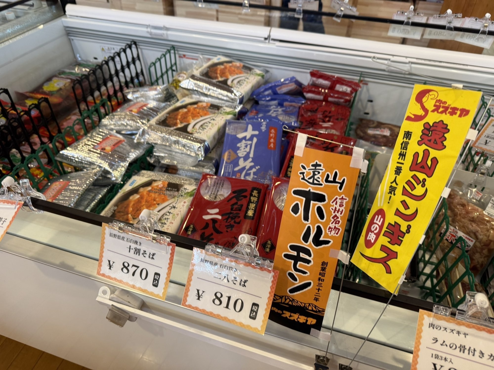 遠山郷には名物「遠山ジンギス」と呼ばれる肉があります。ジンギスというからジンギスカンなのかといえばさにあらず。昭和30年代にこの地で創業したスズキヤがこの地域にいる動物を食べやすく味付けして提供しはじめたもので、味付きのスタミナ肉のことを指します。