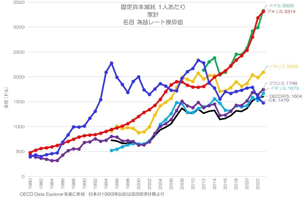 図2 固定資本減耗 1人あたり 家計 為替レート換算値