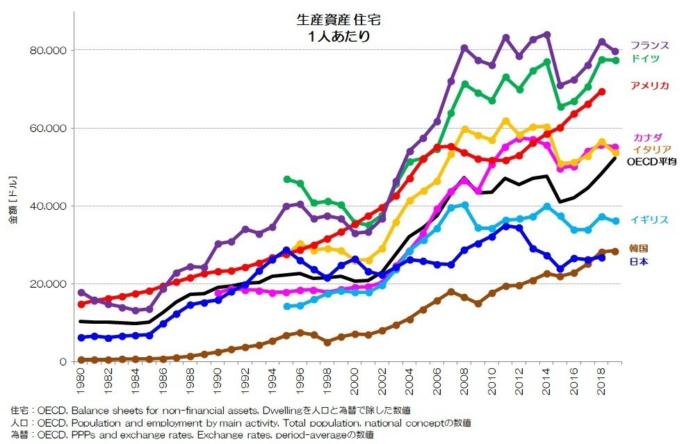 先進国の中でも家計の固定資産の目減りが大きい方になりますね。