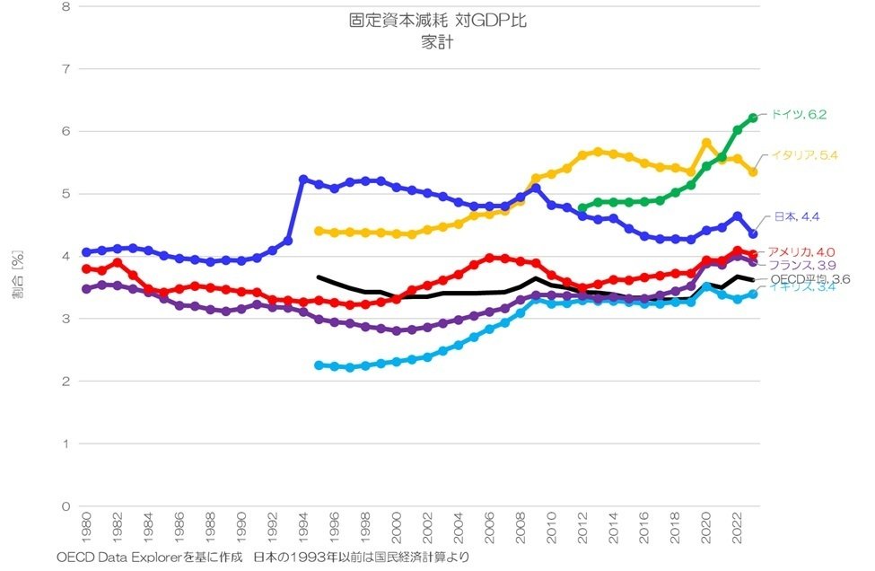 ここからは、日本の家計の固定資本減耗がどの程度の水準なのか、国際比較して確認していきたいと思います。