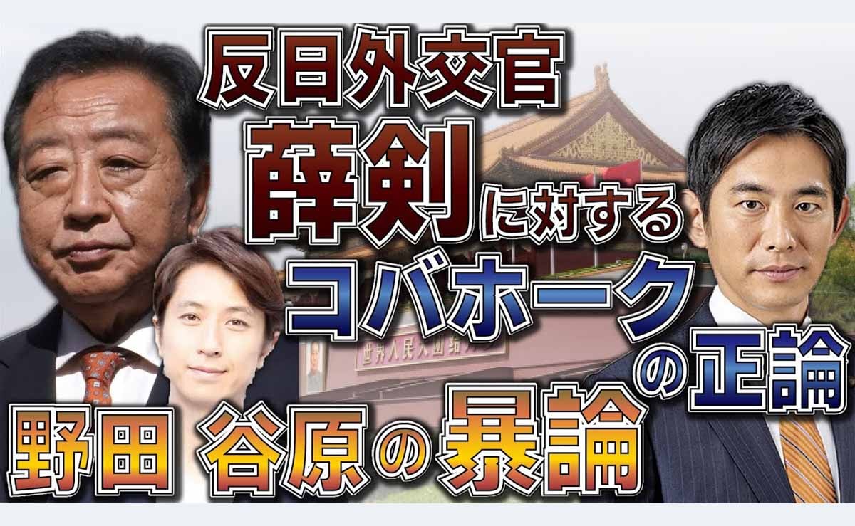 反日外交官薛剣に対するコバホークの正論:立憲・野田佳彦、谷原章介の暴論