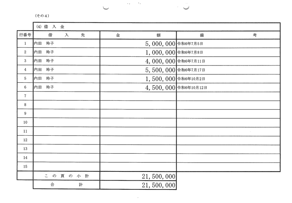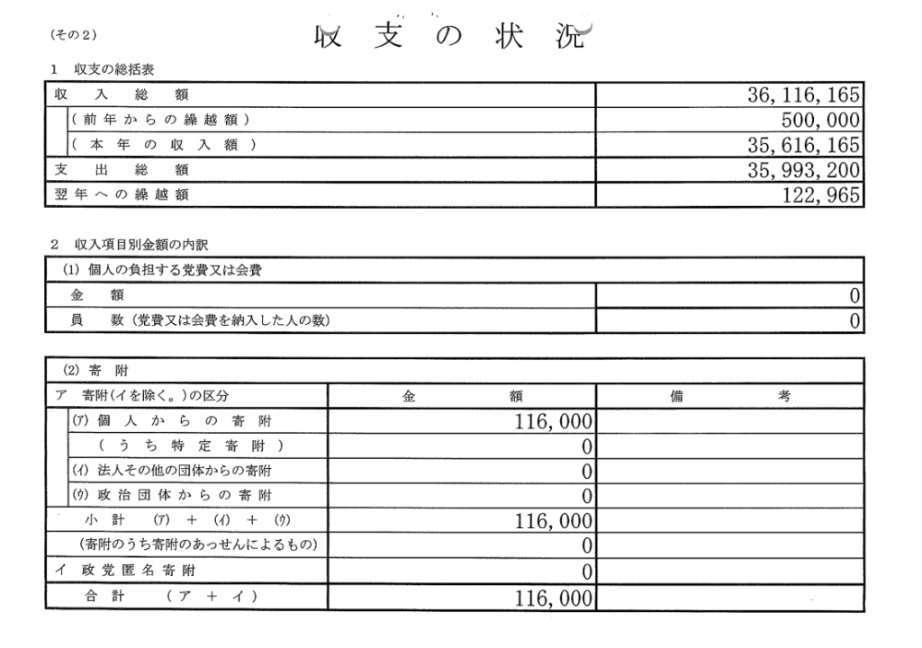この2,150万円を0で報告していたという事ですから、どうやっても現金が2,000万円以上マイナスになる収支報告書だったことになります。