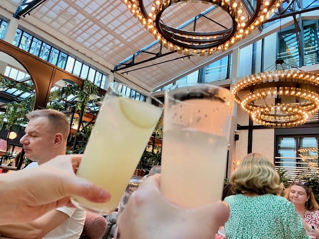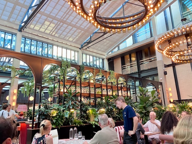 高いガラス天井に覆われた広々とした空間、雰囲気いいね〜(冷房効いててよかったね〜。今日は39度まで気温上がって、夜も30度越え…)。