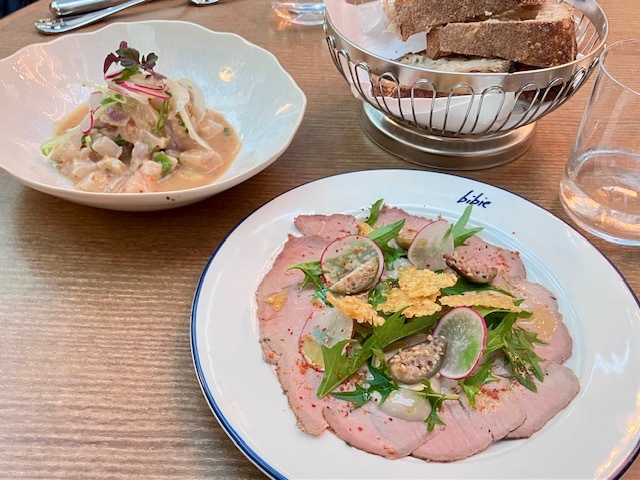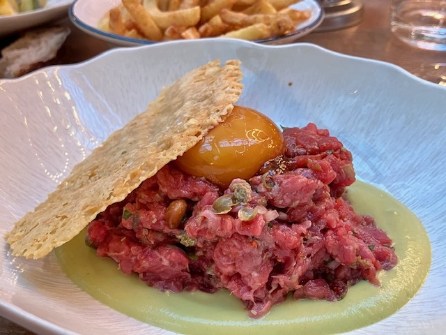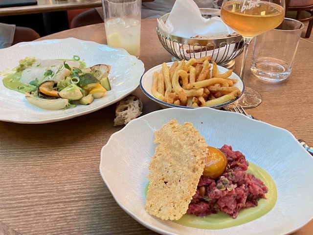 酷暑の日々、料理は冷製ものが多くて嬉しいな。ヴィッテロ・トンナートと牛タルタル&フリット、ラヴェンダー風味のモモのヴァシュランという、いかにも夏らしいディナーを楽しむ。
