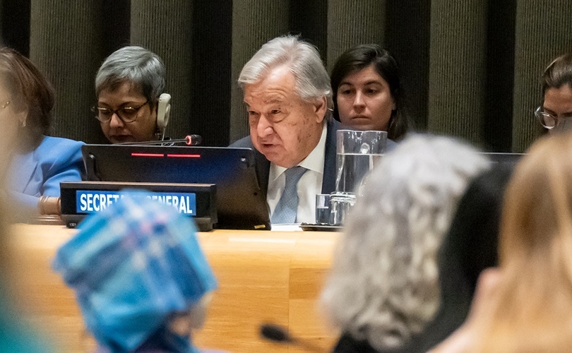 女性に対する暴力撤廃を呼び掛ける国連のグテーレス事務総長、国連広報センターから