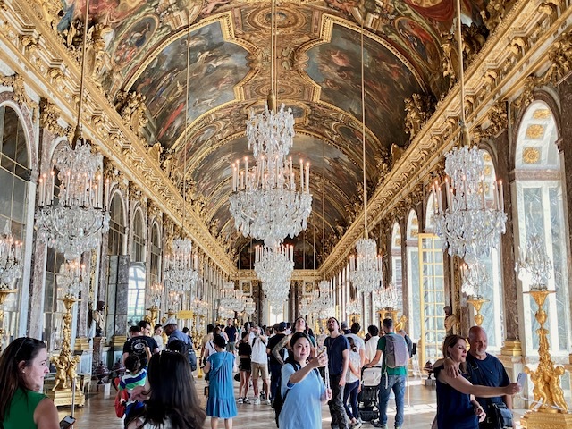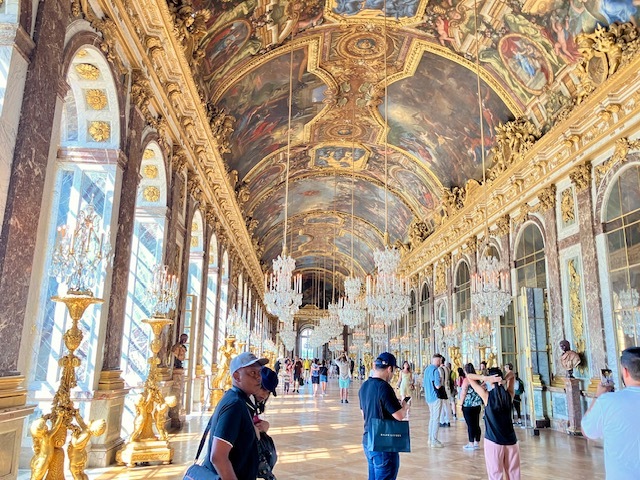 お庭や(バレエ「ル・パルク」の世界観〜)プティ・トリアノンを歩いてマリ=アントワネットに思いを馳せてから、宮殿内へ。大混雑予想してたけど、夕方だからか恐れていたほどの混雑でなくてほっとする。南西から入る光で、鏡の間がきれい。
