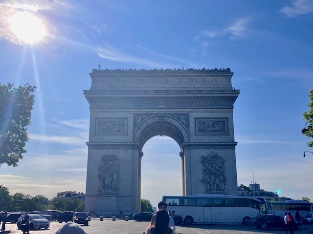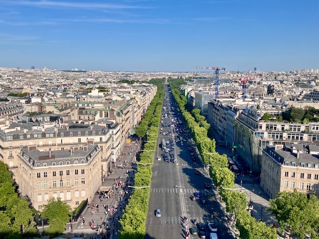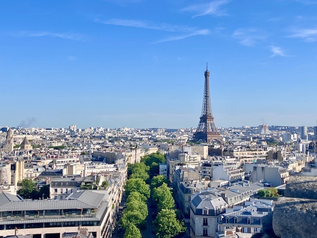 パリに戻り、凱旋門の284段の階段も登って、パリ一望。遠くチュイルリー公園には、パリオリンピックの聖火もちっちゃく見える。まだ上がってるところ見ていないので、夜、いつか見られるといいな。